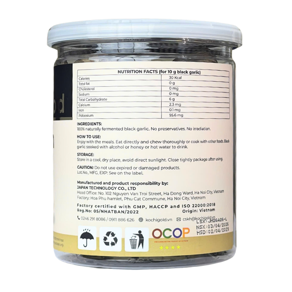 • Tỏi đen 100% lên men tự nhiên.